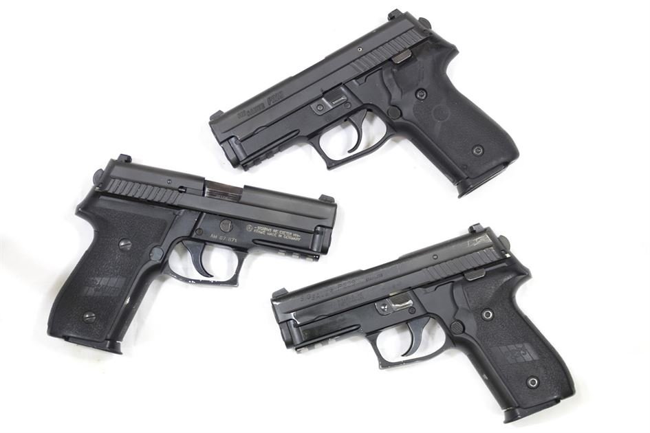The photos represent the overall condition of these Sig Sauer P229R DAK 40 S&W police trades, which are in fair condition. Each pistol comes with one 13-round magazine.